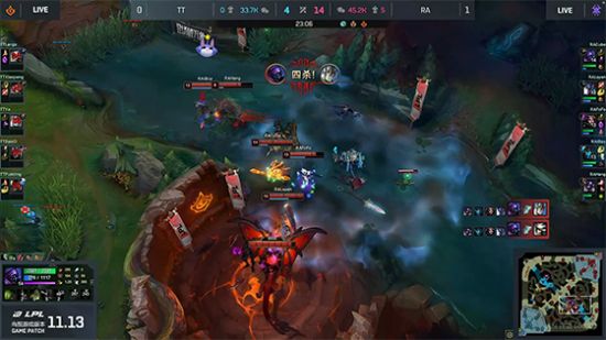 比赛开始后,GEN战队迅速掌控了场上的节奏,展现出灵活的战术和出色的配合。尽管TES战队在开局阶段表现不俗,但GEN战队凭借其强大的团队战斗能力逐渐扩大了领先优势。Kiin在比赛中多次通过精准的技能释放和果断的决策,为队伍创造了不少击杀机会,成为场上的关键人物。